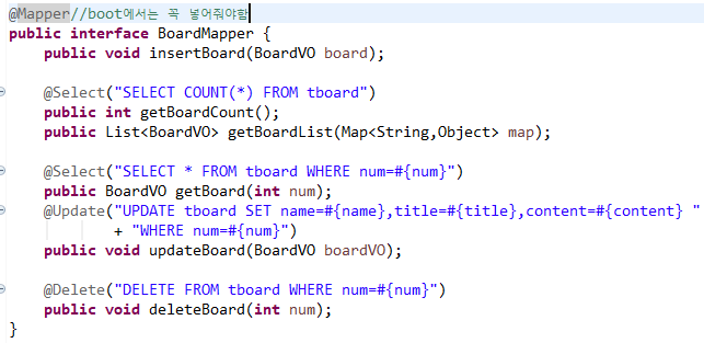 여기선 Interface위에 @Mapper명시해준다.