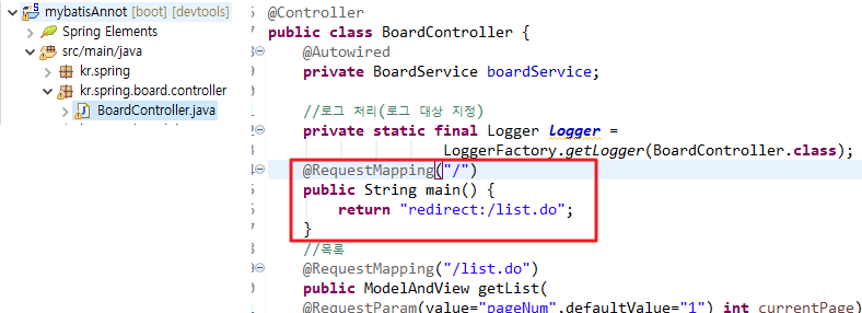 Controller에 redirect 시켜주는 매핑을 추가한다.